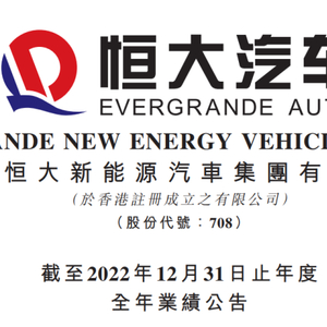 据港交所披露,恒大汽车7月26日晚发布公告,截至2022年12月31日止年度,本集团产生亏损276.64亿元(2021年:563.44亿元),即恒大汽车2021、2022两年亏损共达840亿元。