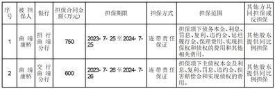 2. 曲靖康桥的其他股东蒋建飞、胡强、韩丽、陈德仲与银行签署连带责任担保协议,按股权比例提供同比例担保。