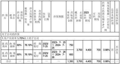 为支持昆药集团旗下全资及控股子公司生产经营及业务发展,2023年7月25日,在上述批准范围内昆药集团发生如下担保(单位:万元):