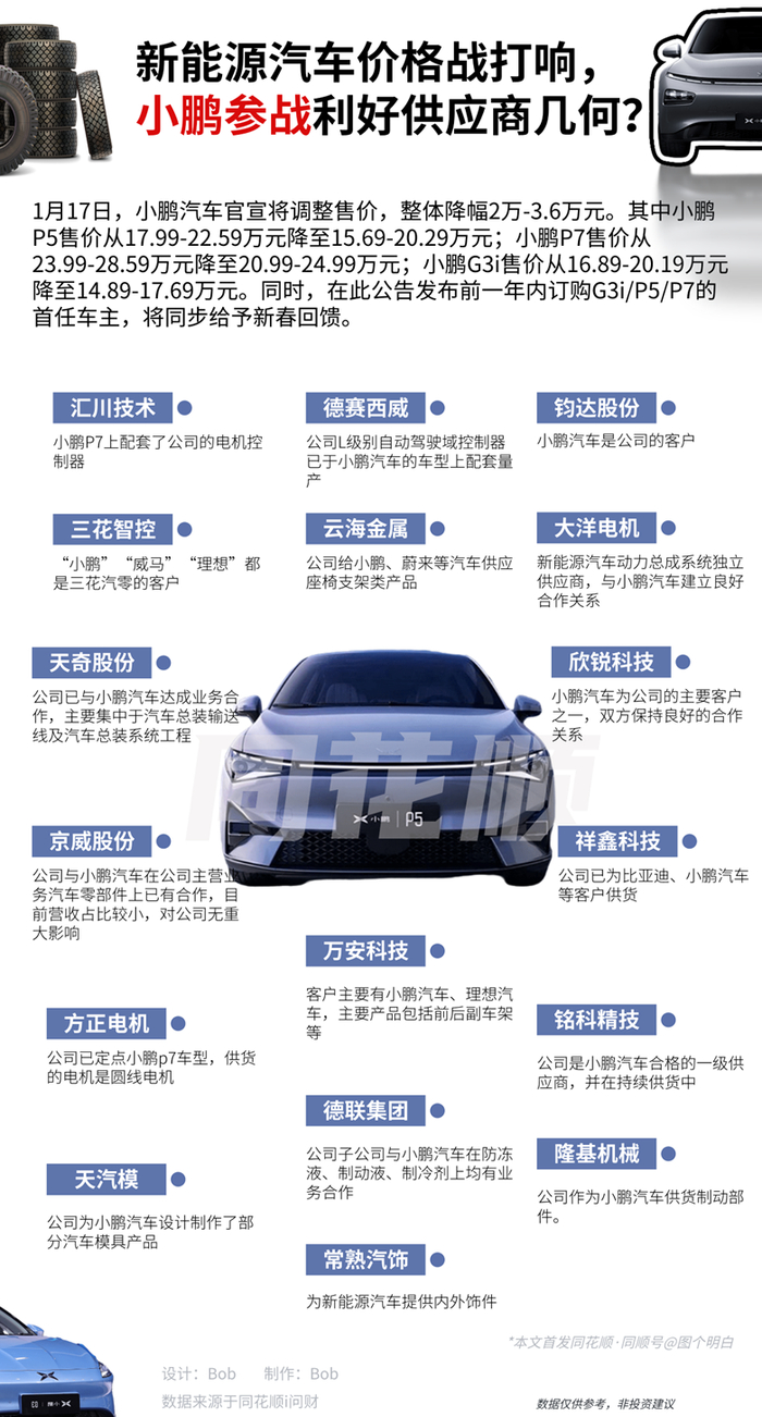 我们梳理小鹏供应链相关标的: