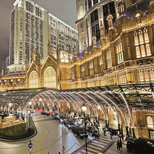 在威尼斯人度假区酒店的斜对面,是新近崛起的澳门伦敦人度假区。这里前身为澳门金沙城中心,是金沙集团在澳门打造的第三家拥有浓郁异域风情的主题酒店综合度假区。伦敦人度假区的英伦体验始于酒店外墙,其设计灵感源自威斯敏斯特宫及国会大厦,同时度假区“1︰1”仿制了96米高的伊莉莎白塔(又名“大本钟”)。游客到达度假村门口时,仿佛置身于伦敦最著名的火车站——维多利亚车站。度假区大堂还从白金汉宫日常的“皇家卫兵换岗”仪式汲取灵感,在大堂中上演创意的英伦风情表演。