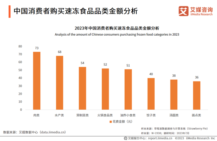 中国消费者购买速冻食品品类金额分析