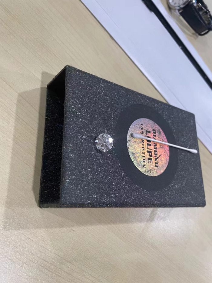 7月7日上午11时许,男子如约到店,支付了10万元意向金后,小刘将男子带至VIP室,并根据鉴定流程使用专业工具为其现场验货。期间,小刘与协助验货的门店经理一直都没有放松警惕。而男子验货的手势非常特殊,他先向小刘要来一张白纸垫在钻石下面,自称是检查透光率,还使用镊子夹起钻石在灯光下反复比对。