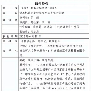近日消息,最高人民法院就三维家(全称“广东三维家信息科技有限公司”)起诉群核科技(全称“杭州群核信息技术有限公司”)侵害计算机软件著作权及不正当竞争纠纷案做出终审判决。