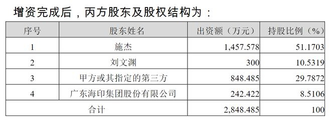 2015年12月15日,海印股份以人民币20576.17万元的价格收购湖南红太阳36.7022%的股权,收购完成后,公司持有红太阳演艺的股权比例将由38.2978%提高至75%。湖南红太阳其他股东施杰、刘文渊的持股比例分别为20%和5%。