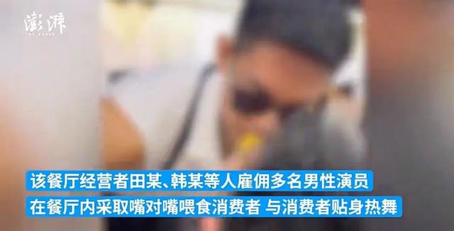 今年4月至7月,云南西双版纳一餐厅雇佣多名男性演员在餐厅内采取嘴对嘴喂食消费者,向消费者表演舔杆动作等具有挑逗性的表演,现场还有未成年人观看。