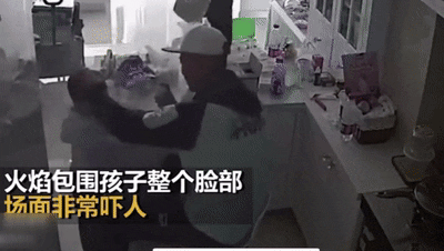 爸爸给孩子喷防晒喷雾时,孩子正在玩打火机,嘭……