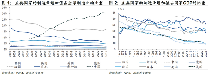 回顾历史,1970年以来,美国经历了“去工业化”和“再工业化”两个阶段。20世纪70年代,两次石油危机冲击引发经济危机,以美国为代表的发达国家陷入“滞胀”。彼时美国制造业的支柱产业是汽车和钢铁,石油危机的爆发冲击美国大型、高油耗汽车生产,而汽车产量的大幅下滑带来钢铁需求萎缩,传统钢铁产业产能逐步去化,美国制造业产业结构发生改变,制造业增加值占比下滑,“去工业化”态势一直延续至2008年。2008年金融危机爆发暴露以金融、地产等虚拟经济为主导的“去工业化”所带来的“空心化”的问题,由此开启美国“再工业化”战略的进程。