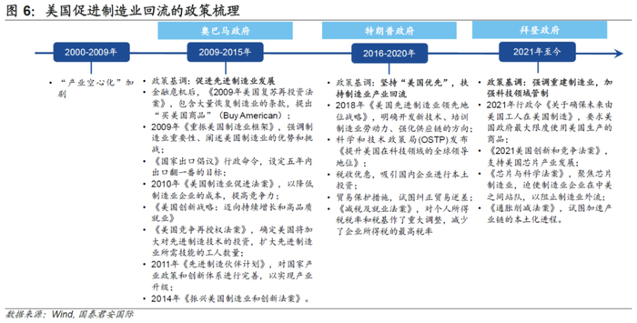 美国强化供应链保障,这成为本轮制造业回流的另一个特征。制造业“回流”并非是指所有产业回归至美国。为实现广泛意义上的制造业“回流”,美国政府会基于国家或地区的生产要素比较优势进行区位选择,也更加强调供应链安全。