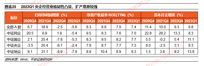 业绩改善是本轮国企改革的重点之一。从2023年初国资委新增央企的ROE和营业现金比率的业绩考核指标,到3月国资委开展对标世界一流企业价值创造行动等政策部署,政策层面对于央国企经营业绩的关注度明显提升,市场对于央国企业绩改善的预期也进一步加大。
