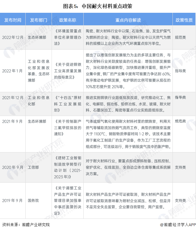 本文核心数据:耐火材料行业重点政策;耐火材料制品产量;耐火材料行业市场规模