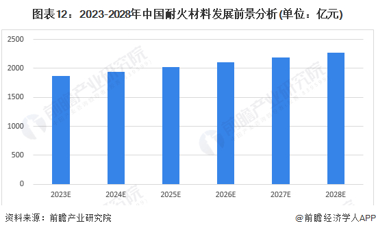 在政策的引导下,中国耐火材料行业发展更加规范化,绿色低碳和智能化成为行业发展的重要趋势,结合近年来中国耐火材料发展现状和下游需求情况来看,未来中国耐火材料行业将保持平稳增长趋势,前瞻预计,2028年,中国耐火材料市场规模将达2275亿元。