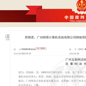 2023年7月21日,广州互联网法院公布的《苏炳添、广州网易计算机系统有限公司网络侵权责任纠纷民事一审民事判决书》((2023)粤0192民初5199号)公布了该案的细节。