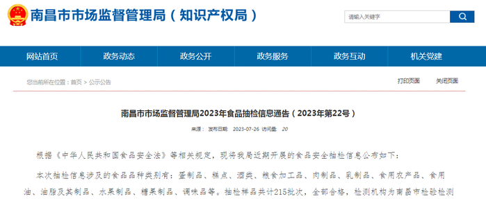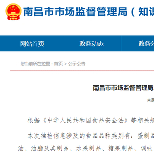 南昌市市场监管局抽检食品215批次 全部合格