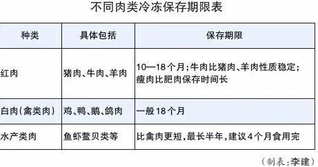 从现有实验研究来看,不同种类的肉,冷冻保存的期限也不同: