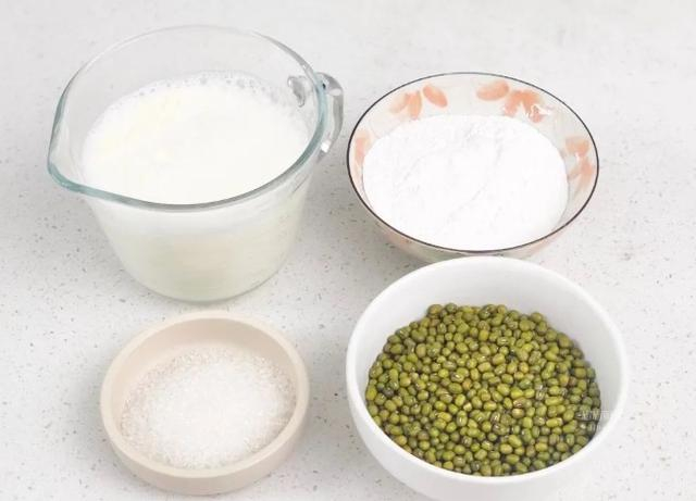绿豆95克、糯米粉105克、白糖40克、牛奶70克、纯净水70克 。