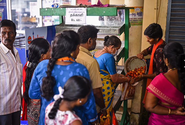 在远离产区的印度南方城市金奈,番茄价格飙得更高,7月20日已高达每公斤250卢比(约合人民币21元),印度政府以补贴价格限购西红柿。印度消费者事务、食品和公共分配部的数据显示,印度西红柿价格从2023年初到7月11日已飙升341%。