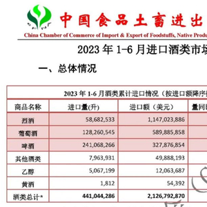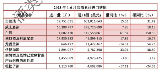 2023进口酒半年数据出炉:白兰地强势回归,量额均双位数增长,葡萄酒进口量下降近30%