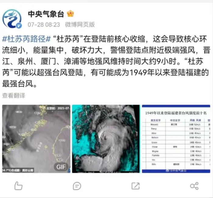 紧急!“杜苏芮”即将登陆!或成为1949年以来登陆福建最强台风!