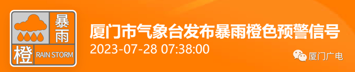 厦门市气象台07时38分将暴雨黄色预警信号升级为暴雨橙色预警信号:过去1小时翔安区大嶝街道已出现25毫米以上降水,预计未来3小时我市累计降水量仍有40~60毫米,局部可达80毫米。请注意防范强降水引发的城市内涝、山洪地灾等次生灾害。