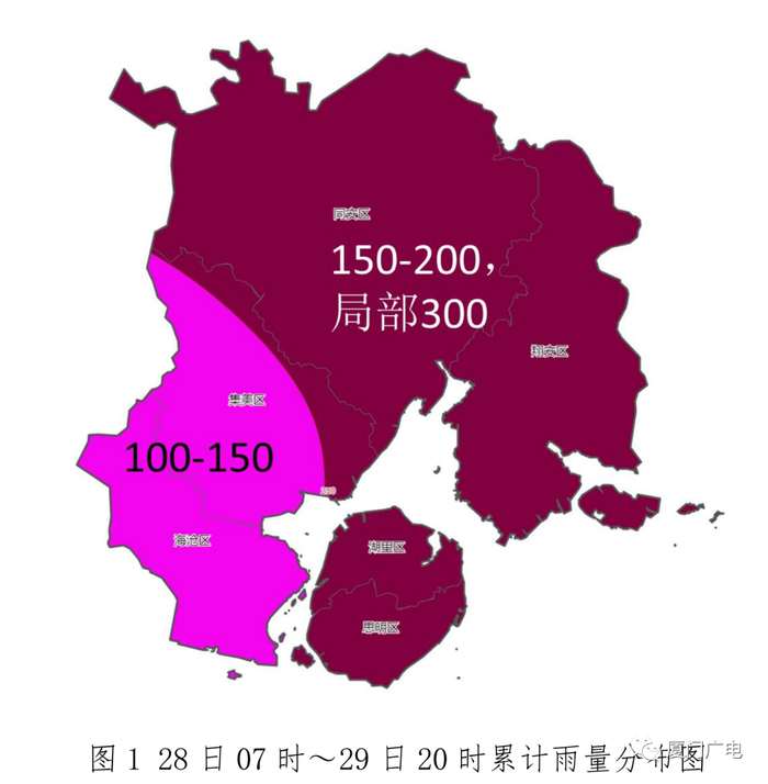 预计今天白天~29日我市有大暴雨过程,主要降水时段为今天白天到夜间。预计过程累计雨量可达100~200毫米,局部可达300毫米。小时雨强最大可达 100毫米。