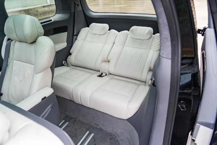 第三排两张独立座椅非常宽大,同样包裹Soft NAPPA真皮,并且可以实现靠背180°放倒。由于转轴在座垫之上的位置,第三排乘客无法真正躺平,但对于舒适度的提升还是非常巨大的,甚至可以充当钓鱼凳使用。