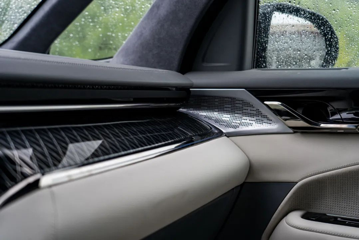 隐藏式双A柱曲面玻璃设计非常独特,从前风挡到侧窗的线条几乎无缝衔接,车内可以获得不错的视野,稳固的三角形设计也提升了碰撞强度。此外,极氪009的车顶最大承重可达13吨,车身扭转刚度36450N·m/deg,并配备“十宫格”电池防撞结构。