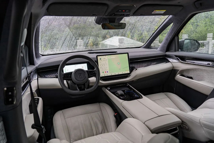 8155智能座舱平台达到目前一线水平,10.25英寸全液晶仪表盘的尺寸很大,呈现的内容相对比较精简,15.6英寸中控大屏内置ZEEKR OS for MPV车机系统,支持六独立音区识别,内置的智能控制面板可以通过大屏控制电滑门,并为后排乘客一键调整座椅、屏幕、空调温度。