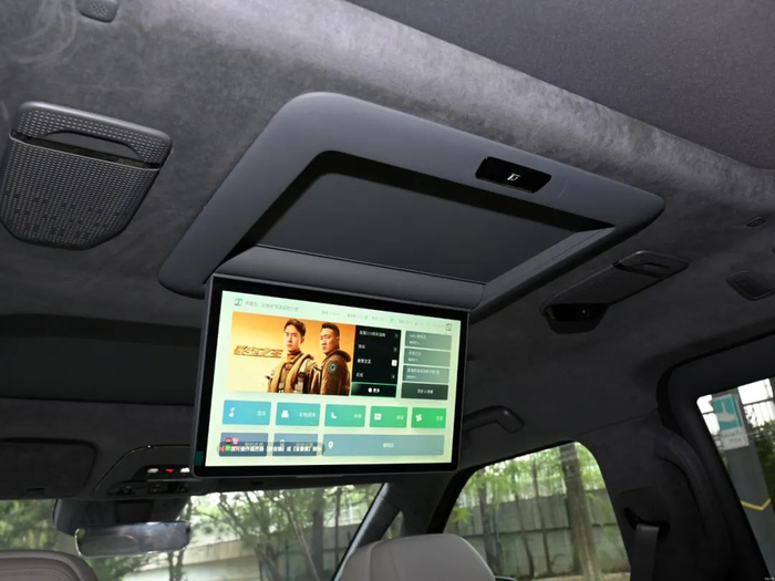 顶棚之上,是2.16㎡的双天幕玻璃,并配备双电动遮阳帘。15.6英寸中央吸顶屏支持5挡观看角度调节,内置车载5G和高速Wi-Fi网络,1080p摄像头可支持高清视频会议。