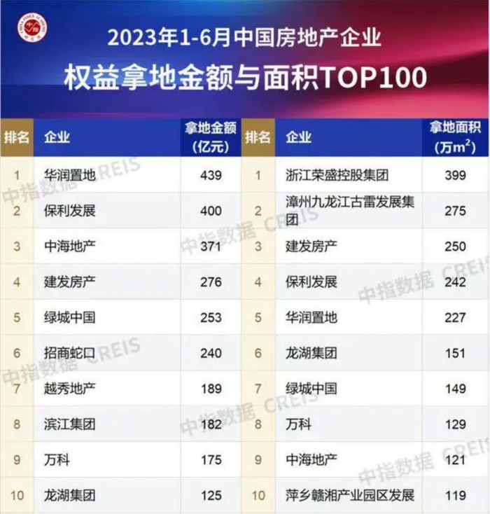 前两天,2023年1-6月全国房地产企业拿地TOP100排行榜,震惊到了我。