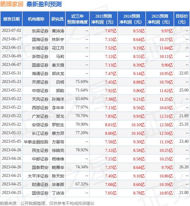 证券之星数据中心根据近三年发布的研报数据计算,民生证券徐皓亮研究员团队对该股研究较为深入,近三年预测准确度均值为78.92%,其预测2023年度归属净利润为盈利7.12亿,根据现价换算的预测PE为23.26。
