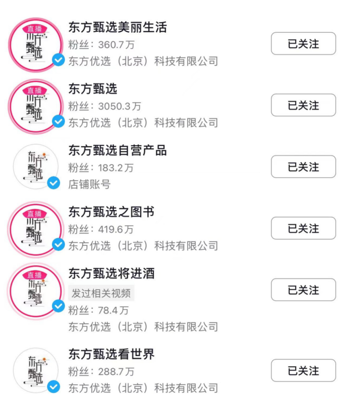 一年来,东方甄选在抖音迅速布局,账号从1个增加到6个,品类从单一的农产品突破到图书、美妆、服装、酒水、文旅产品等,借直播矩阵延续往日热度,抖音粉丝总量超过3000万。