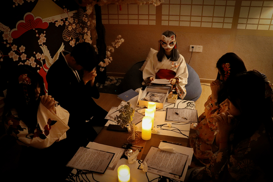 另一种则是“实景杀”,除去剧本本身的内容,还有相映衬的剧本环境,玩家换上剧本中人物的服装,在场景里推理演绎,同时有DM(剧本杀主持人)辅助,通过内容和环境的营造,给予玩家极强的代入感,让其“深陷其中”。