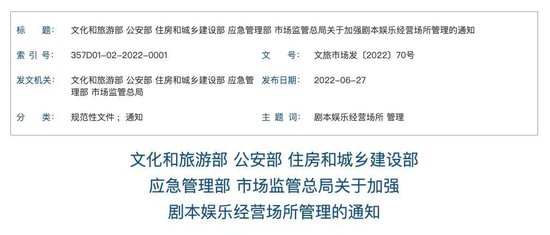 外部监管的入场,也让整个行业逐渐步入规范化。2022年1月,上海文旅局出台《密室剧本杀内容管理暂行规定》;6月,文旅部、公安部等五部门发布《关于加强剧本娱乐经营活动的通知》,首次在全国范围内将剧本杀、密室逃脱等剧本娱乐场所新业态纳入管理。