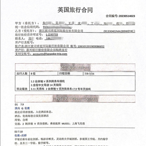 该行程同行的是孩子3位同班同学与各自的母亲,王女士提前设计好行程,并与浙江彼司博克国际旅行社有限公司签订合同,由对方提供英国包车、导游服务。服务总价为20600英镑,近20万人民币。