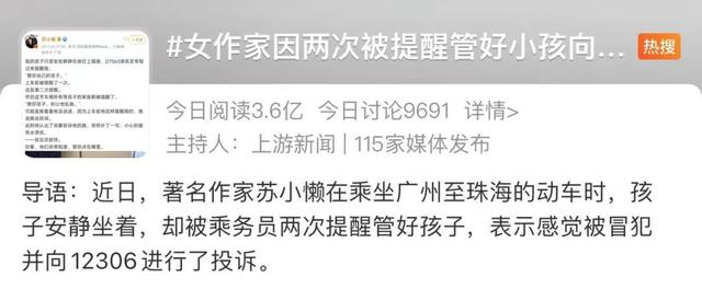 苏小懒告诉记者,当天她还未走进车厢,还站在车厢外,乘务员便提醒她管好孩子,不要乱跑,不要打扰到别人。她认为,