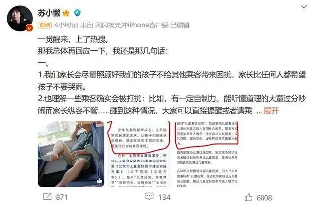 对于苏小懒提到的列车广播问题,工作人员表示,“目前广播方面没有播报让哭闹幼童去车厢连接处哄劝,如果确实在比较吵闹的情况下,乘务员会进行提醒。”
