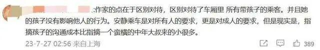 她称,我也能感受到乘务员有他们的苦衷,他们也很辛苦,应该并不是想要刻意刁难有孩子的家庭,但某种风气,使他们备受压力才转移给有孩子的乘客。但以上,都不应该是高铁乘务成员对所有儿童一视同仁、过分苛责要求的理由。她认为,