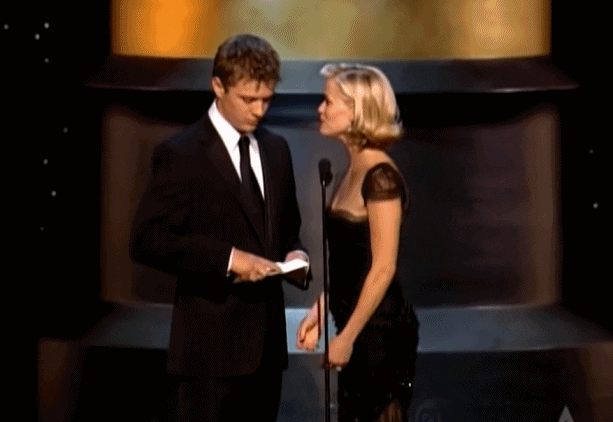 2002年,Reese和结婚了好久的丈夫一起上台为奥斯卡获奖者颁奖,两人早就设计好要说的梗了,可结果就在Reese假装询问获奖名单“可以让我来宣布吗”时,丈夫却阴阳怪气了一下:“你挣钱比我多,你来吧。”