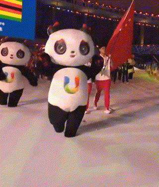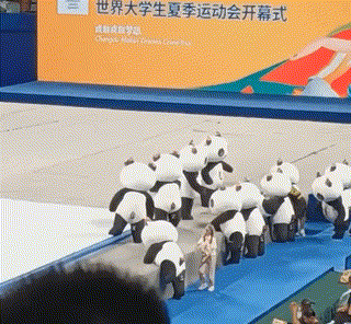 7月28日的成都大运会开幕式上,一群大运会吉祥物“蓉宝”玩偶带领世界各国代表队入场,不少节目里还有可爱的大熊猫加入歌舞。它们圆滚滚的胖胖身体,由两只有力的小脚支撑着,走起路来蹦蹦跳跳,凭借活泼的肢体语言成为“显眼包”萌出圈。