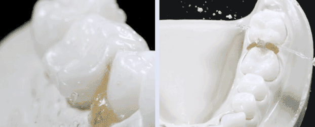 这是因为舒宁冲牙器冲击速度虽快,但却细腻绵密,在击中目标时,瞬间化成为无数个微气泡。