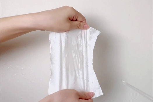 再试试纸巾,也是完好无损~