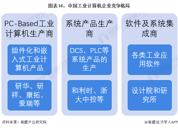 目前,我国参与到工业计算机行业市场竞争的企业主要分为三大类,分别是PC-Based工业计算机生产商、系统产品生产商和软件及系统集成商。