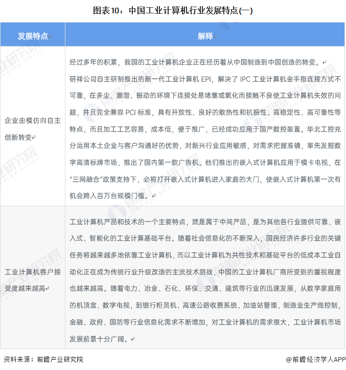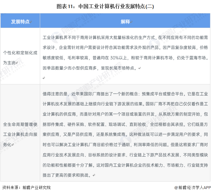 我国工业计算机发展具有三大特点:一是生产企业技术由原先的模仿先进公司转为自主创新,二是工业计算机客户接受度越来越高,三是个性化和定制化成为主流,四是全生命周期管理使工业计算机走向服务化。详细特征解释如下: