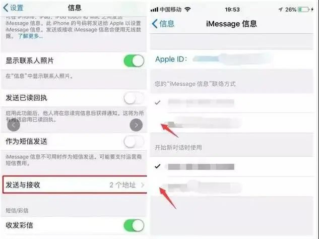 如果您不想要关闭【iMessage信息】这一设置的话,那么建议你取消邮箱收发短信。