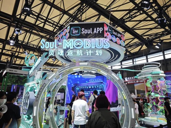 比如Soul的展位打出了“灵魂返航计划”的slogan,主推旗下的数字藏品IP“莫比乌斯”。从现场可以看到,Soul展出了大量“莫比乌斯”系列捏脸形象,展厅被设计成仿太空舱造型,还有精心打扮的COSER和观众合影、互动。
