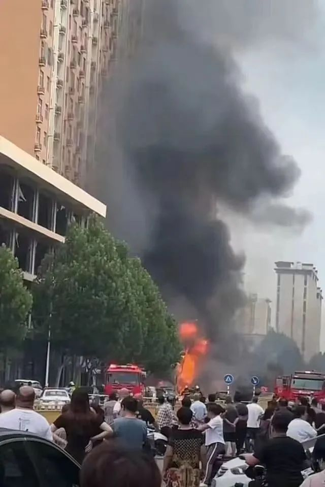 一位距离起火中心约一百多米的商户称,大约10点多,她听到一声巨响,出门看到街中央燃起大火升起大量黑烟,很多玻璃被震碎散落在街上,她随后便撤离现场。