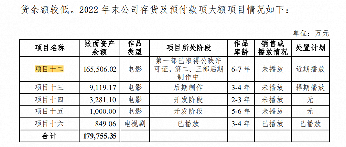 根据北京文化2022年的年报问询函回复,目前《封神》三部曲项目的账面资产余额为16.55亿元,也就是目前《封神》的项目成本,年报显示《封神》固投款还有7.1亿元,被计入“其它应付款”中,或为其他公司投资。