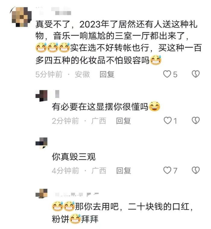 “真受不了,2023年了居然还有人送这种礼物,音乐一响尴尬得三室一厅都出来了。