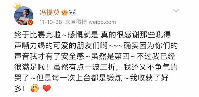 在粉丝心中,冯提莫单纯、善良,永远为粉丝着想,是全世界最好的女孩。